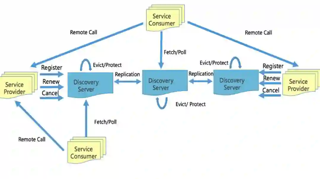 3、全部 Discovery 节点不可用:客户端SDK会缓存数据并拒绝任何实例数过低的异常变更推送;在宕机期间,服务提供者会一直向 Discovery 节点发送心跳请求,直到 Disocvery 节点重启恢复正常之后返回404,此时服务提供者通过调用 Register 接口可以重新注册。