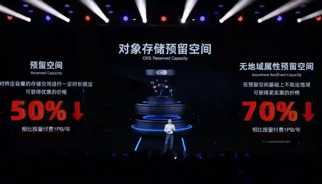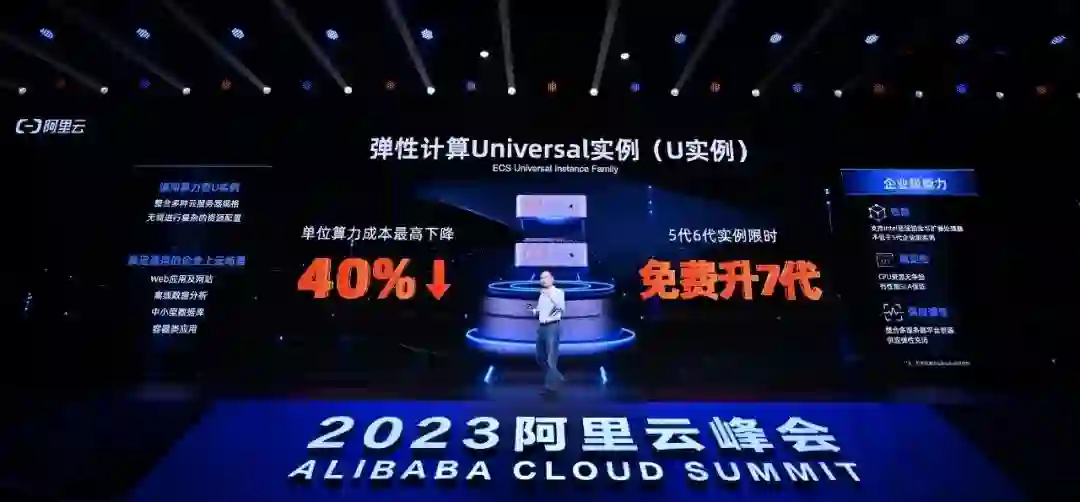 在IaaS层,今天推出新款ECS云服务器U实例来降低企业级云产品的门槛,开发者无需选择具体哪款CPU,U实例将让系统自动选择通用计算实例。主售企业级实例还将降价40%,进一步降低使用的成本,让更多开发者享受到随手可得的算力。在存储上,发布对象存储预留空间产品OSS-RC,降低存储费用,让开发者触及技术发展的红利,不断让开发者在云上进行高性价比的应用开发。