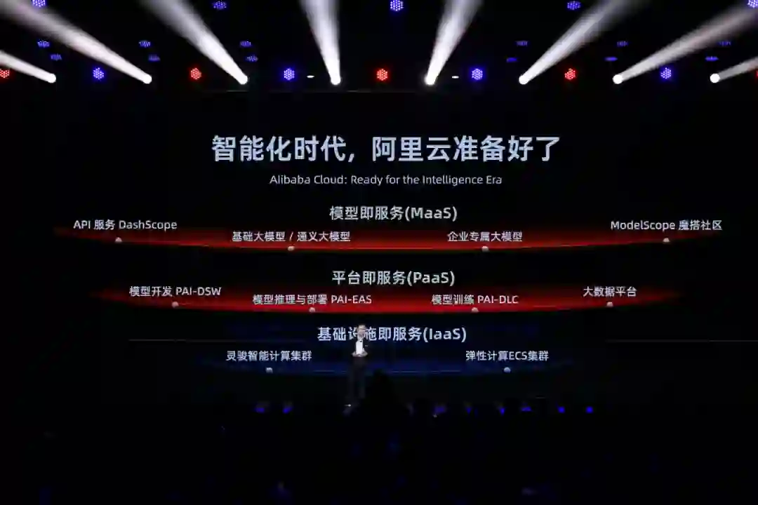 阿里云一直围绕 MaaS 理念来规划云计算产品,其中一个重要的点是围绕模型来实现 AI 开发范式的变革。这背后需要强有力的基础设施做支撑,例如 MaaS 下有 IaaS、PaaS 提供支持。