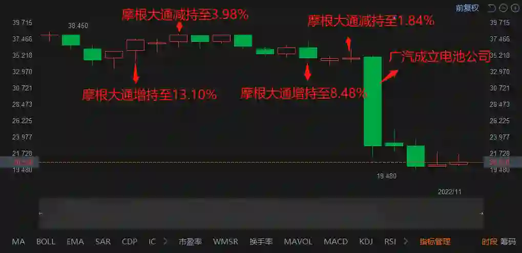 10月27日(摩根大通减持的第二天),中创新航最大的客户广汽埃安宣布自己做电池,中创新航股价才重挫35%,收跌21.3港元。