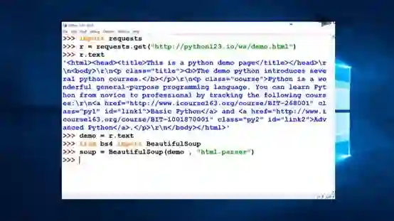 然后用指令soup=BeautifulSoup(demo,”html.parser”)制作soup.