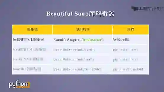 Beautiful Soup库解析器有四个,其中第一个解析器最为常用