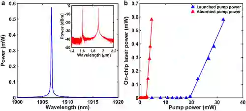 除了为硅光子微系统给出一种有效且低成本的稀土增益方法以外,此类激光器还为扩展新兴 2 µm 波段的应用提供了动力,这将对通信、非线性和量子光学以及传感器领域产生重要影响。