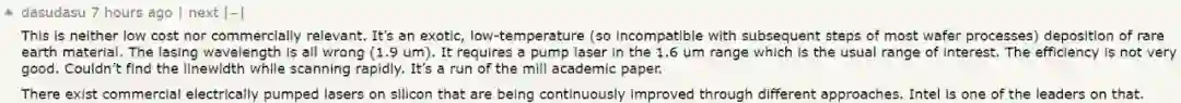 Miarabbas Kiani 的联合导师 Jonathan Bradley 将这项技术誉为「光子学的圣杯」。不过,该研究随即在 Hacker News 上引起了大家的关注与讨论,有人质疑这项研究的实际意义,因为其中用到了稀有的低温材料,可能并不会节省成本或高度兼容: