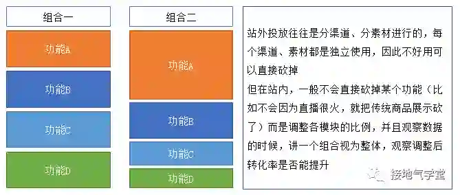 如果是站内分发流量,则要注意是否各种形式之间,存在流量挤兑的情况。原则上,应该给转化率高的渠道多分配流量,但是也不能简单地看“哪个渠道转化高,流量就全给它”。因为有可能某个功能有其特定的爱好群体,因此需要作为一个组合,来考察流量分配效率。