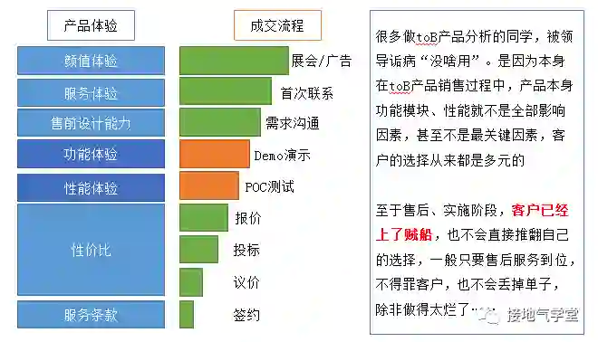 对于B端产品,要特别注意:B端产品的用户实际体验与用户付费是脱离的。因为B端产品经常有招标过程,在招标过程中,如何通过层层考核中标才是关键。此时的产品分析,本质上分析的是销售过程中成功几率(如下图)。