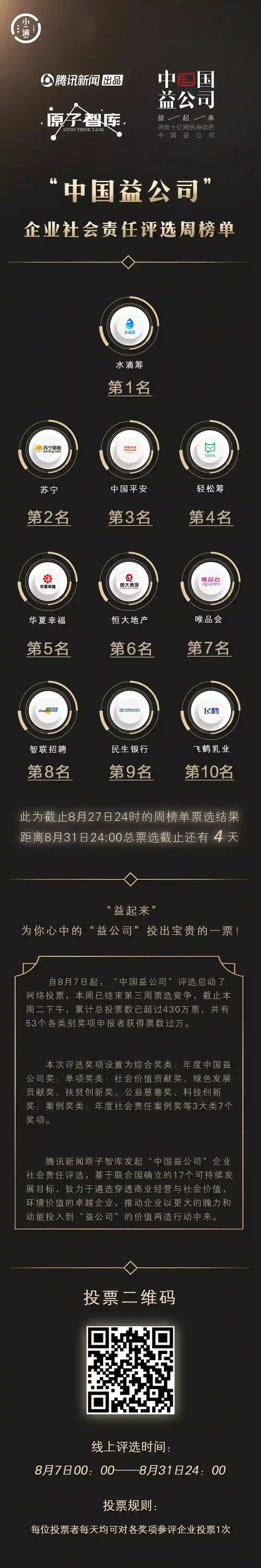在此,我们诚挚的期待您持续参与投票, “益”起来,为你心中的“中国益公司”投出宝贵的一票!