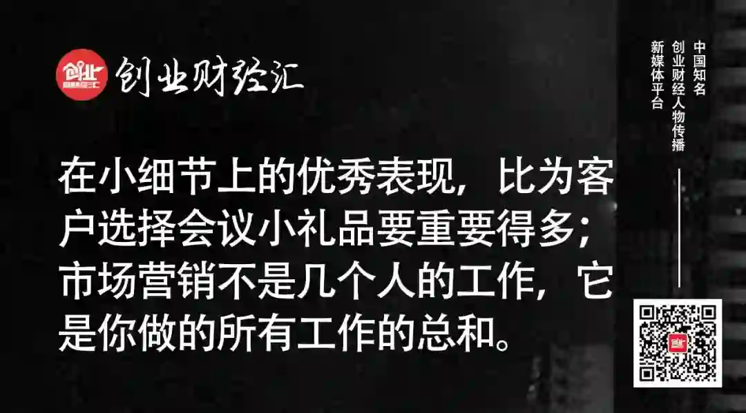 你要明白,在这些小细节上的优秀表现,比为客户选择会议小礼品要重要得多。市场营销不是几个人的工作,它是你做的所有工作的总和。
