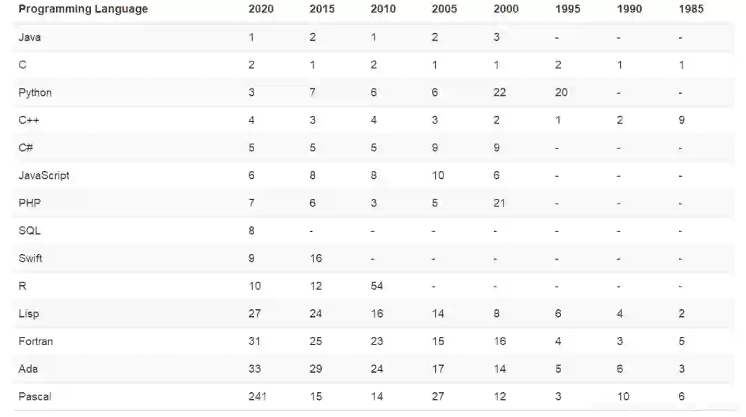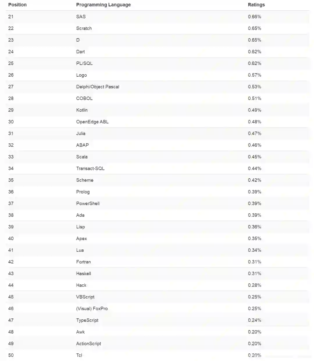 这个排行榜可以用来考查你的编程技能是否与时俱进,也可以在开发新系统时作为一个语言选择依据。