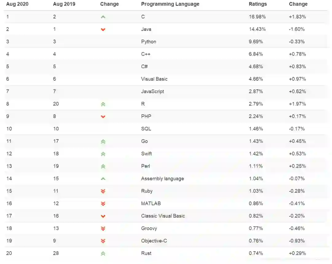 编程语言社区 TIOBE 最新发布了 8 月编程语言排行榜。
