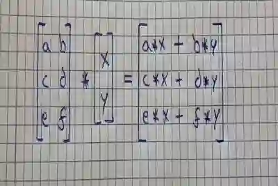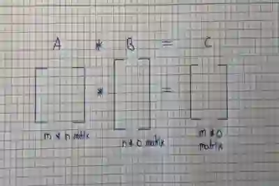 如果你知道如何将一个矩阵乘以一个向量,那么将两个矩阵相乘并不困难。 请注意,如果第一个矩阵列的数量与第二个矩阵行的数量匹配,两个矩阵才能做乘法运算。 结果将是一个与第一个矩阵相同行数和与第二个矩阵相同列数的矩阵。 它的计算方法如下: