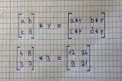 标量乘法是可交换的,但矩阵乘法不行。这意味着当我们乘以标量时,7 * 3与3 * 7相同。但是当我们将矩阵彼此相乘时,A * B与B * A不一样。