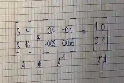 首先,什么是矩阵的逆? 乘以其倒数的数字等于1.请注意,除0以外的每个数字都有倒数。 如果你将矩阵乘以它的逆,结果将是它的单位矩阵。 下面的例子展示了标量的逆: