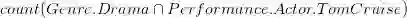 有了上面的定义,我们就可以把一个自然语言问题表示为一个可以在知识库中进行查询的逻辑形式,比如对于问句“Number of dramas starring Tom Cruise?”它对应的逻辑形式是: