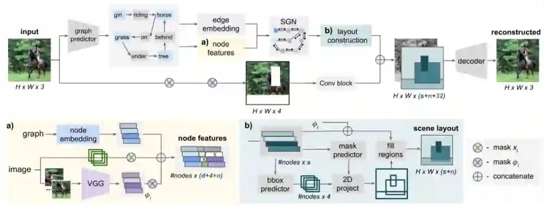 。研究目的是在给定的群集中对图像信息进行编码,进而生成新的群集,如目标替换以及目标之间关系的变化,同时原始图像的语义和风格保持不变。他们提出的空间语义场景图网络不需要直接监督群集变化或图像编辑,这使得人们可以从已有真实世界数据集中训练系统并且不需要做额外注释。