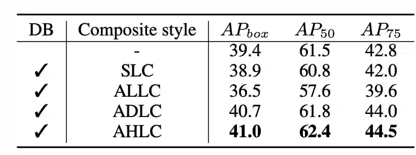 表 4:不同组合形式的对比,基线主干网络为 FPN ResNet101。