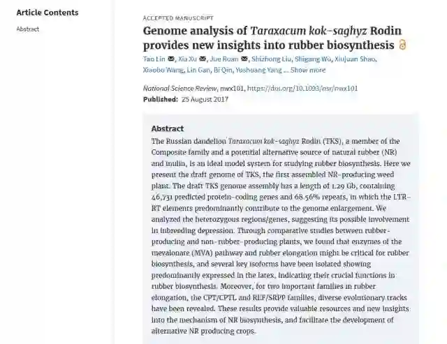 如今,在李洋院士的带领下,中国已经完成了“高质量胶”的橡胶草基因草图!详细系统的阐述了橡胶链延长过程中CPT/CPTL和REF/SRPP两个重要基因家族的进化历程........