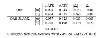 表2.TUM数据集文章方法与ORB-SLAM2效果比较2。