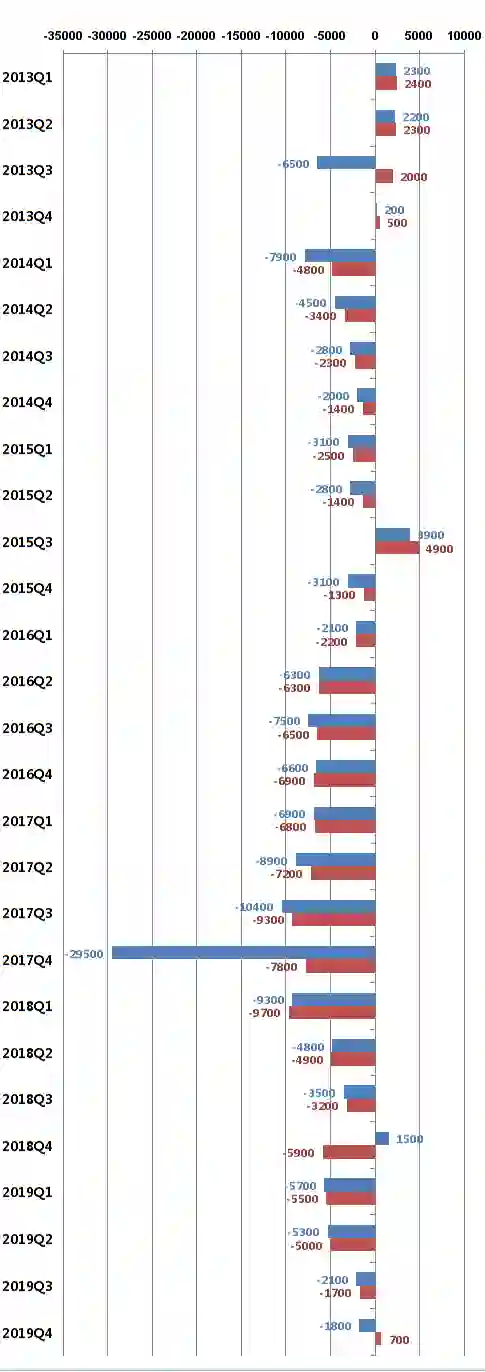 36氪梳理发现,搜狐自2013年Q3出现首次亏损,之后的26个季度中,其只有4个季度实现了盈利。