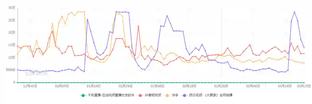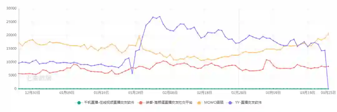 2016年搜狐上线千帆直播,张朝阳亲自上阵,除特殊情况每日露脸“千帆英语课”。值得注意的是,快手2012年11月从纯粹的工具应用转型为短视频社区,4年后抖音上线。从第三方平台近三个月的数据来看,千帆直播如今的下载量远不及陌陌、YY等一众直播平台及抖音、快手这类短视频平台。