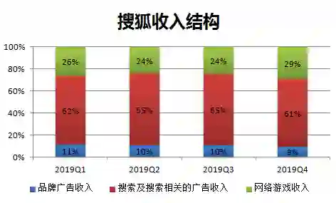 其次,游戏业务也为搜狐贡献了重要营收(搜狐游戏业务主要来自畅游)。其2019年Q4财报显示,该季度游戏业务收入在总收入中的比重扩大5个百分点。