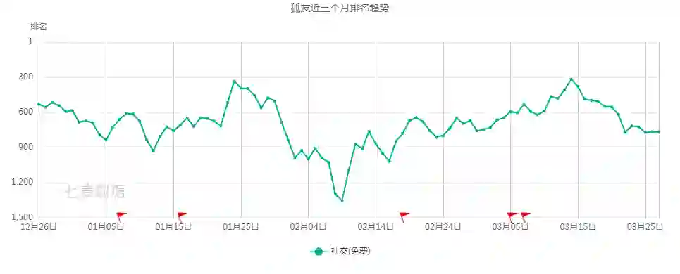 七麦数据显示,狐友近三个月在免费App下载排行榜中最好的名次仅为318。在第三方应用平台“豌豆荚”上,其下载量也远低于同期入场的社交App。