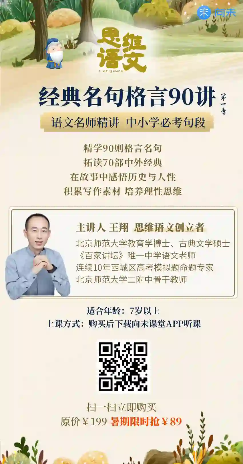 这个暑假,全国第一位登上《百家讲坛》的中学语文名师,“线下一课难求”王翔老师首次推出音频课:《经典名句格言90讲》。