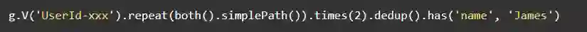 抛开查询语句的复杂度,该类查询语句在关系型数据库中执行起来是非常低效的,往往要秒级才能正常返回。如果进一步变为3度查询,则更慢了。那么,要是采用图数据库呢?以Gremlin为例,你可以很简单的写出这样一段查询语句: