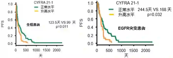 CYFRA21-1是NSCLC早期诊断中有价值的肿瘤标志物,还可预测EGFR-TKI的疗效。一项Meta研究显示,无论总体人群还是EGFR突变人群,CYFRA21-1正常组的EGFR-TKI治疗效果均更好(如图1)[5]。此外,肺鳞癌患者CFYFA21-1水平升高最明显、诊断灵敏度最高,可作为辅助CT等影像学手段早期检测肺鳞癌的首选标志物[3]。