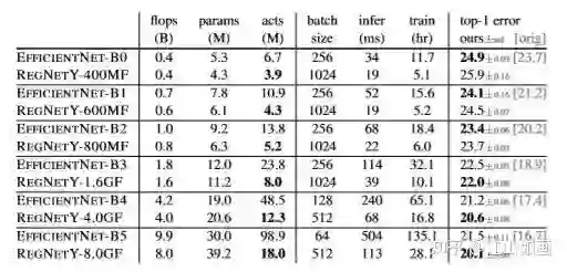 RegNet不仅网络设计范式与当前主流“背道而驰”:简单、易理解的模型,也可以hold住高计算量。在类似的条件下,性能还要优于EfficientNet,在GPU上的速度还提高了5倍。
