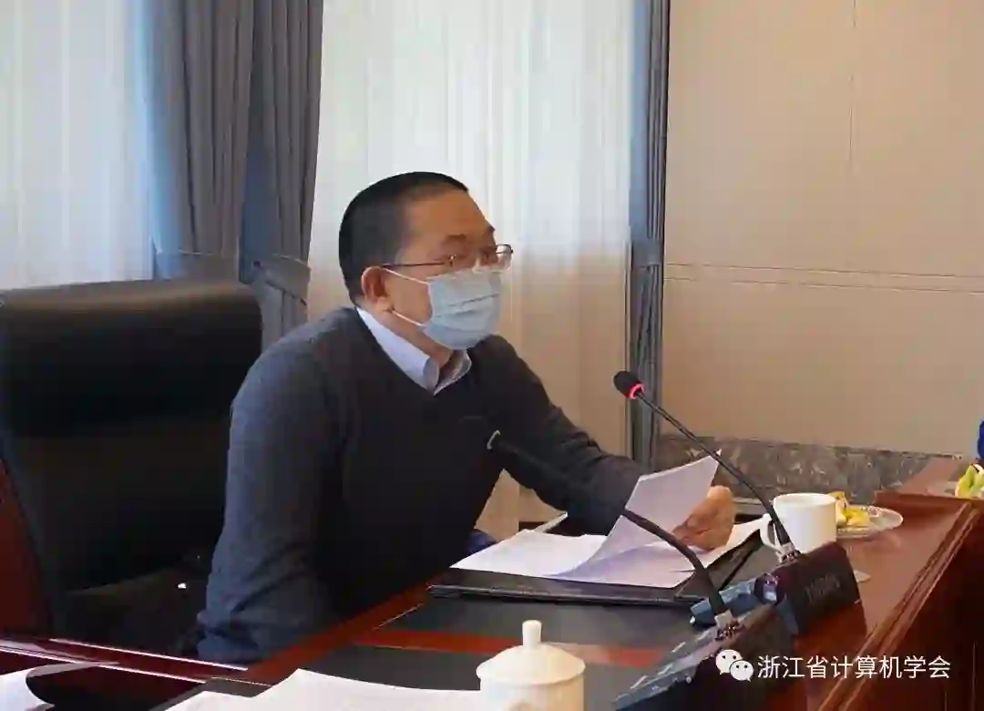 浙江省计算机学会、行业协会副理事长兼秘书长、浙江大学计算机学院肖俊教授就2021年度学术年会筹备工作情况进行了汇报,与会代表就年会议程和日期等细节进行了商议。