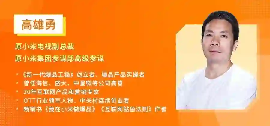 在本次直播分享中,高雄勇老师将结合小米的实战案例,与你分析爆品打造以及品牌建设的一些思考: