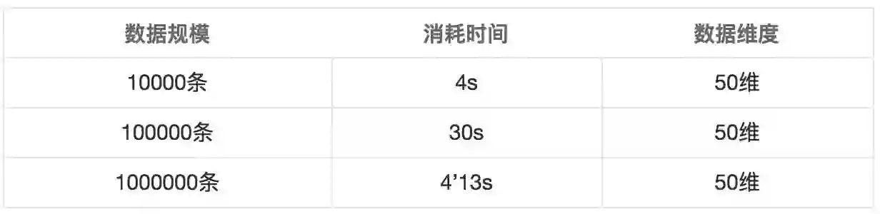 可以看到聚类效果还是不错的,对k-means的聚类效率进行了一个测试,将维度扩宽到50维