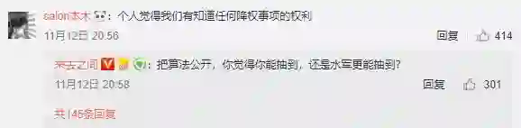 在苹果降频门之后,恐怕没几个人还乐意给这种明晃晃的商业行为洗地:不公平就是不公平,即便不公平的理由再冠冕堂皇,暗箱操作也是暗箱操作,不告知也是不告知。微博避开疑似bot、避开不活跃用户、有显著的性别歧视(至少在结果上),有没有在每次抽奖前告诉用户?没有。