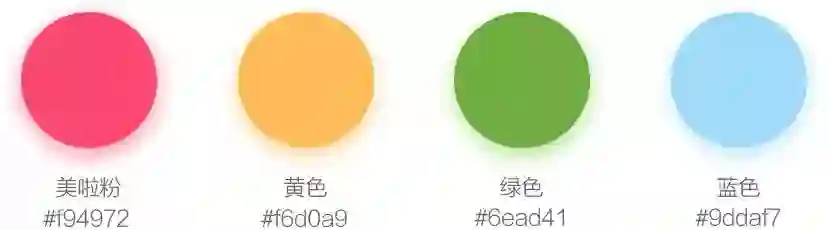 美啦5.0的品牌色仍然是美啦粉色,应用于主形象,并贯穿于整个空状态;辅助色黄色,应用于辅助形象等;辅助色绿色、蓝色作为场景元素等。