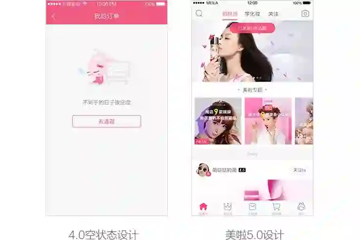 美啦5.0设计定位精致、时尚、品质感。而4.0的空状态设计已不能很好的承载全新的品牌认知。因此空状态的设计对于整个App的品牌统一有着重要的补充意义。