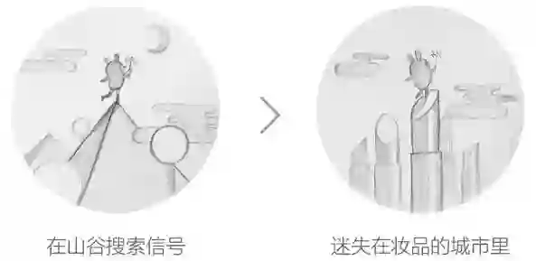 于是考虑用户更熟悉的城市场景,同时用妆品替代城市的建筑,美啦兔在妆品的城市里,找不到回家的路。