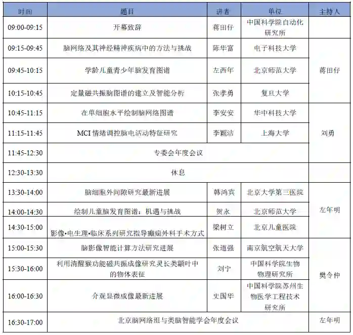 本次论坛秉承“交流、合作、创新”的宗旨,针对脑科学、类脑智能等领域中的前沿和关键问题,将邀请国内知名脑图谱与类脑智能领域专家教授做专题学术讲座。会议期间,专委会和学会将召开年度会议,讨论专委会的人员增选、下一年度计划等事宜,热忱欢迎各位委员莅临本次会议,共商未来发展大计。