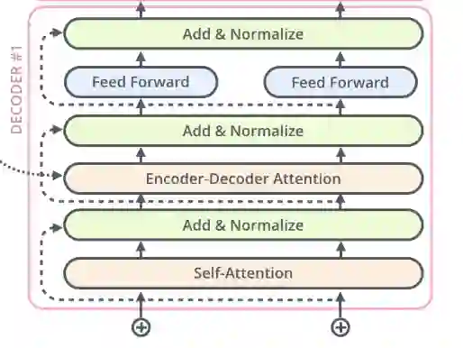 其实Deocer的五个组件我们在Encoder Part里面已经完成了四个部分,只剩下一个Encoder-Decoder Attention是没有涉及的。其实这个跟encoder_layer的差不多,只不过是它的