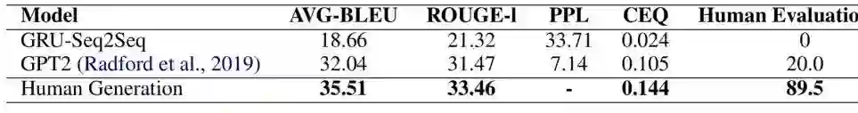 为测试模型在给定因果事实后生成合理的解释的能力,我们利用经典的GRU-Seq2Seq模型以及GPT2进行了解释生成实验。其中,我们使用自动评价指标AVG-BLEU、ROUGH-l、PPL,以及人工评价衡量生成质量。由表2可得,虽然相比于GRU-Seq-Seq,GPT2性能有明显提高,但是和人类生成的解释质量相比仍存在巨大差距,尤其在人工评价指标上。这显示,深度理解因果事实,并为此生成合理解释仍是相当具有挑战性的任务。而无法深度理解因果事实也可能是阻碍当前的因果推理模型性能进一步提高的主要因素之一。另一方面,这也一定程度显示所提出的解释生成质量评价指标CEQ的合理性。