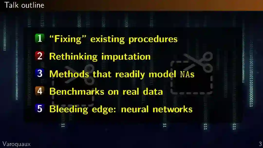 后台回复“MLMV” 就可以获取《如何处理数据缺失值?INRIA研究员Gael 《机器学习缺失值处理》54页ppt教程,为你讲解》专知下载链接