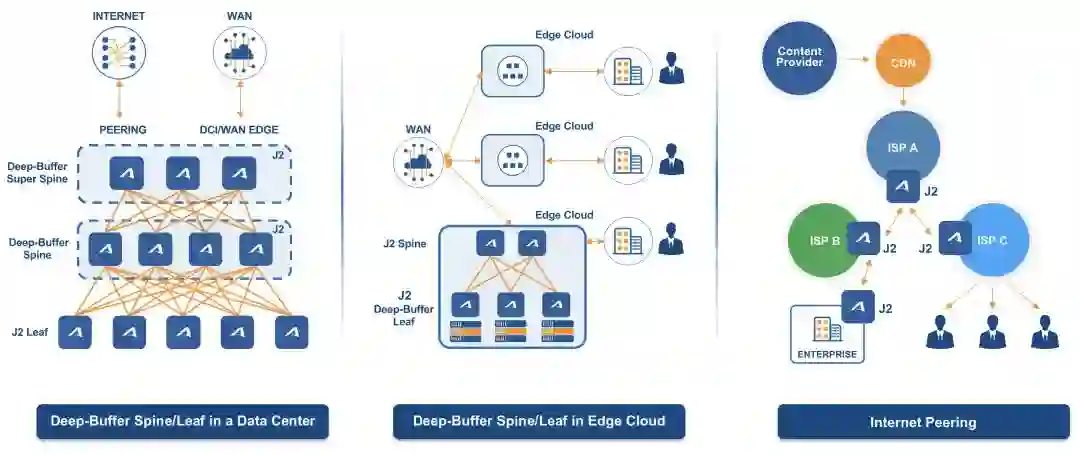 实际上,在连接方面,数据中心开始看起来更像是我们的房子:有一条很粗的管道接入互联网,我们使用有线和无线路由器直接将设备连接至互联网。面对新兴网络架构,“尽可能使用交换,仅在必要时才用路由”这句老语可能被彻底颠覆。或者更准确地说,尽可能使用浅ASIC缓冲器,仅在必要时才用深度缓冲器,因为应用程序的延迟要求(无论应用程序在边缘还是在数据中心)都将决定架构决策和ASIC选择。交换机和路由器供应商的选择将放在第三位。