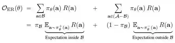 根据以上所述的强化学习思想,在具体的实施中,MAPO 提出了如下的创新方案。首先,为了提高训练的效率,MAPO 算法将采样到的高回报程序存到一个 Memory Buffer 中,在对策略函数拟合网络进行训练时,最大化期望回报的目标函数分为两个部分,一个是 Memory Buffer 中采样程序的期望回报,另一部分是Buffer之外的采样程序期望回报,如下图所示。