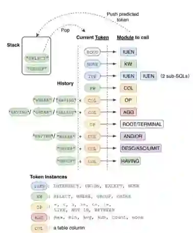 其中的方案之一,SyntaxSQLNet 也采取了类似于 SQLNet 的思路,将预测 SQL 的任务从语法上进行解耦,按照 SQL 语句中不同字符的不同类别分组,来进行 SQL 的预测。这样的思路在 Spider 上并没有取得较好的效果,只取得了 19.7 的准确率。