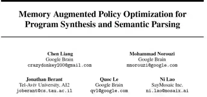 MAPO 算法是在论文 Memory Augmented Policy Optimization for Program Synthesis and Semantic Parsing 中提出的,发表于 2018 年的 NIPS 会议。论文中对 MAPO 算法的设计思路进行了详细的介绍,并且对 MAPO 算法在 WikiSQL 上的应用进行了详尽的分析。