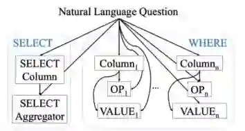 SQLNet 是 WikiSQL 数据集上的一个 baseline 模型。根据 WikiSQL 数据集中 SQL 语句的特征,预测 SQL 这一任务被 SQLNet 解耦为了 6 个子任务,包括选择哪一列的 Select-Column、使用什么聚合函数的 Select-Aggregation、有几个条件的 Where-Number、筛选条件是针对哪几列的 Where-Column、各个条件的操作符 Where-Operator 以及各个条件的条件值 Where-Value。