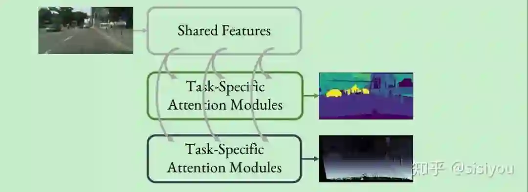 方法:对于每个任务学习一个attention,作为特征选择器,选择与该任务相关的特征。