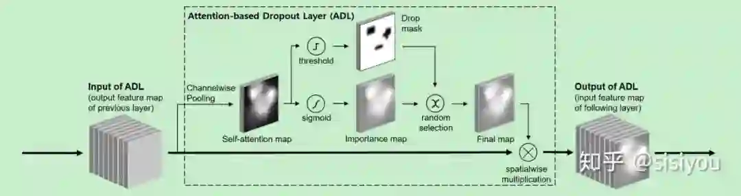 做法:代替之前采用CAM得到特征的热力图,模型使用(channel-wise pooling)直接生成热力图。采用一个设定的阈值,得到一个drop mask。