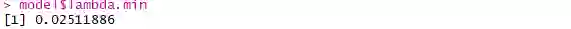 在最优alpha值下用交叉验证法寻找最优lambda,最优lambda值为0.025。