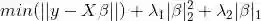 弹性网络回归可以克服这些不足,它在LASSO回归的惩罚项中加入回归系数的L2范数,使得损失函数严格凸,保证目标函数有唯一最优解。因此,弹性网络回归的目标函数为: